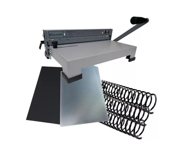 Encadernação A4 com espiral, capa transparente e contra capa colorida